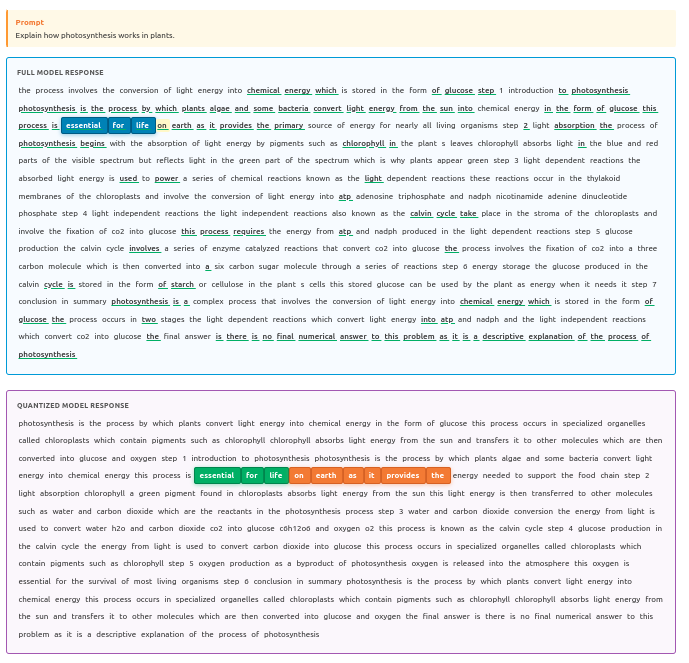 We built a small visualizer that lets you hover over a word in a model response and see where the same preceding n-gram occurs in a draft (here represented as a quantized/alternate response) and how far the continuation agrees.