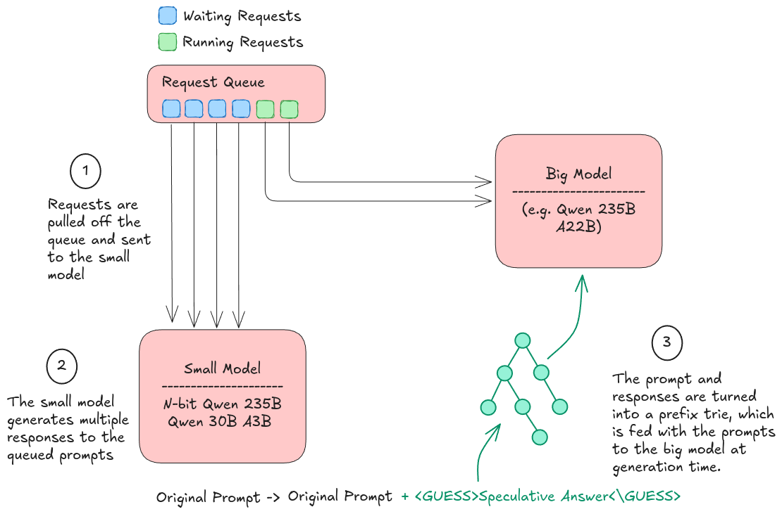 Speculative decoding is one of the most direct ways to claw back throughput from the inherently serial nature of LLM decoding. Most approaches focus on building a better draft model (small models, adapters, future-token predictors), but queue speculation asks a different question: what’s the best draft we can compute while the request is waiting anyway?